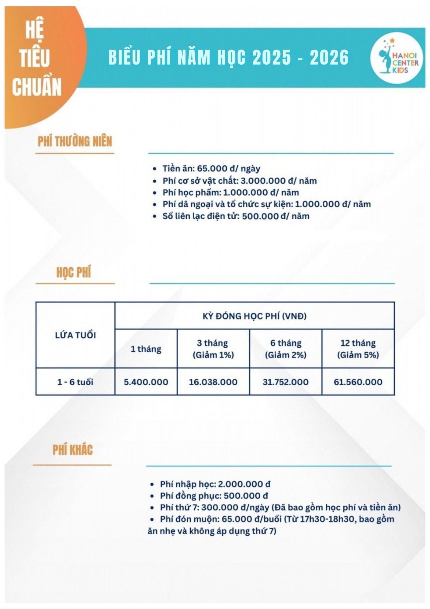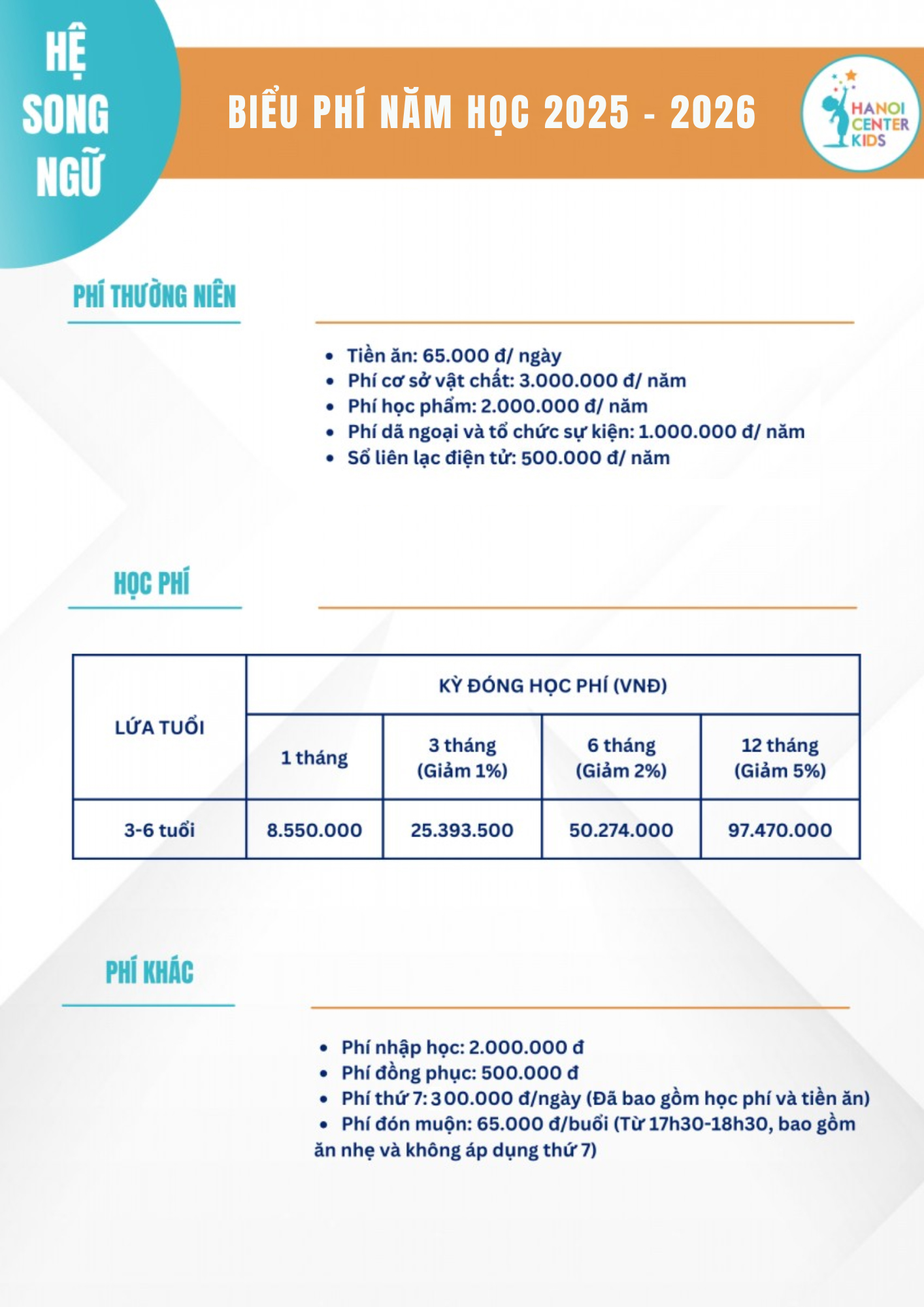 HỌC PHÍ HANOI CENTER KIDS